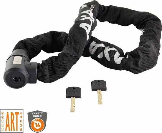 Het Cherto fietsslot van AXA is een zeer sterk slot dat is goedgekeurd voor de verzekering tegen diefstal. Het slot is namelijk ART2 goedgekeurd, dit houdt in dat het slot aan alle eisen voldoet. Dit slot is van uitstekende kwaliteit en zorgt ervoor dat u uw fiets kunt parkeren op een openbare plek zonder dat u bang hoeft te zijn dat uw fiets gestolen kan worden. Dit slot heeft een dikte van 8 mm en de ketting is gemaakt van speciaal gehard staal. De ketting wordt omhult door een rode nylon hoes, deze sterk voorkomt dat de ketting uw fiets kan beschadigen.