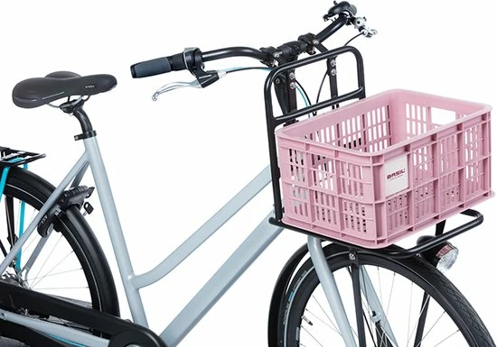 Ben je op zoek naar een compacte fietskrat? Dan is de Basil fietskrat in de maat small iets voor jou! Deze kleine krat heeft met een inhoud van 17,5 liter genoeg ruimte. Het kleine formaat maakt de krat ook geschikt voor kinderfietsen. De krat is gemaakt van kunststof en heeft een trendy roze kleur. Daarnaast wordt de krat inclusief kratklikker geleverd. Deze kratklikker met logo heeft een contrasterende kleur en laat je krat nog meer opvallen.