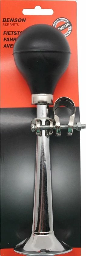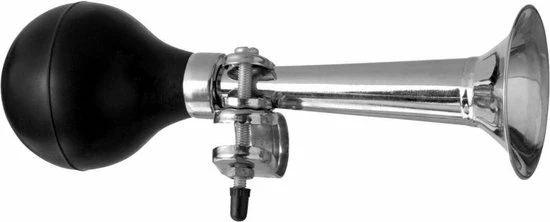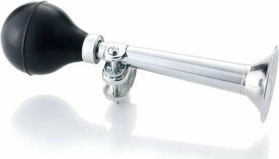 Deze fietstoeter is gemaakt van staal met een rubberen knijpgedeelte en heeft een lengte van 20 cm. De toeter is makkelijk te monteren. Fiets accessoire voor kinderen.