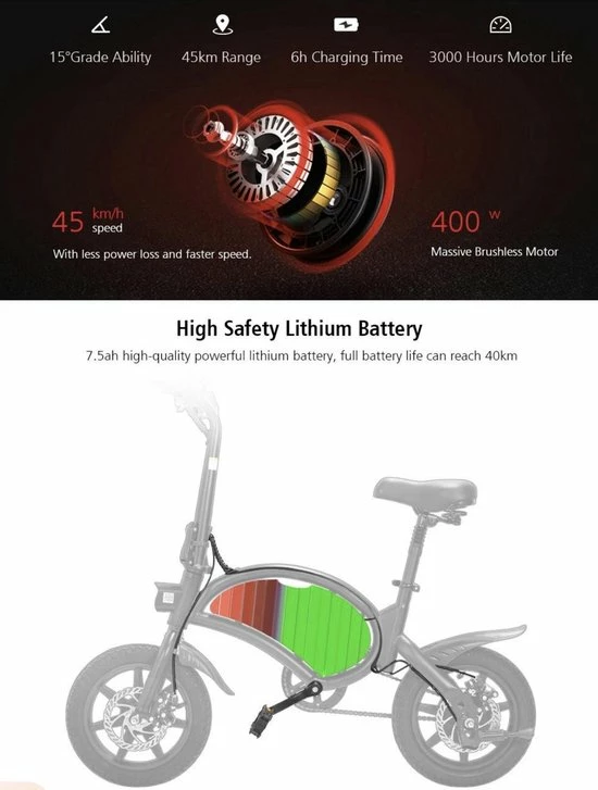 ? Uitstekende actieradius en snelheid: de elektrische fiets heeft een 400 W high-speed motor 48 V & 7,5 Ah lithiumbatterij waarmee u gemakkelijk tot 40 km / u kunt rijden, het snellaadsysteem slechts ongeveer 6 uur, het is ideaal om door de stad te reizen en reizen over korte afstanden