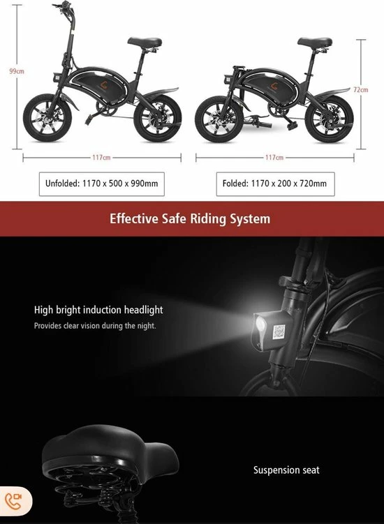? Sterke ondersteuning: controleer de levensduur van de batterij, zet de koplamp aan, claxon, geef gas, de e-bike wordt geleverd met een schijfrem voor maximale remprestaties, wanneer u remt, gaat het slimme achterlicht branden