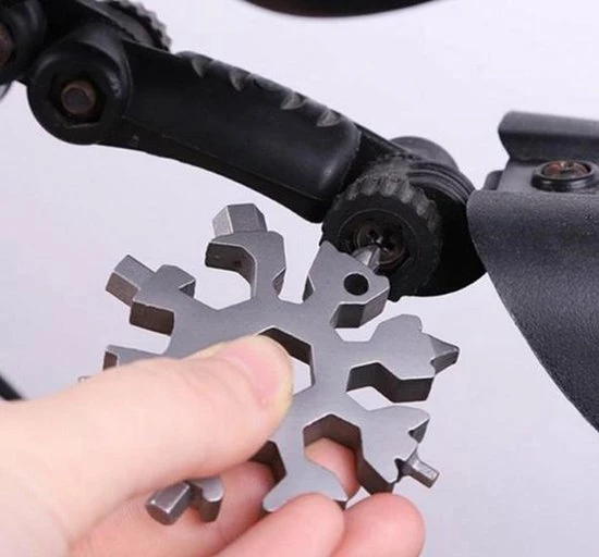 18-in-1 sneeuwvlokgereedschap kan verder worden gebruikt om de bierfles te openen, de snowboard, fiets en meer te repareren. Ideaal gereedschap voor buitensporten zoals kamperen, boarden, avontuur, redding en nog veel meer!