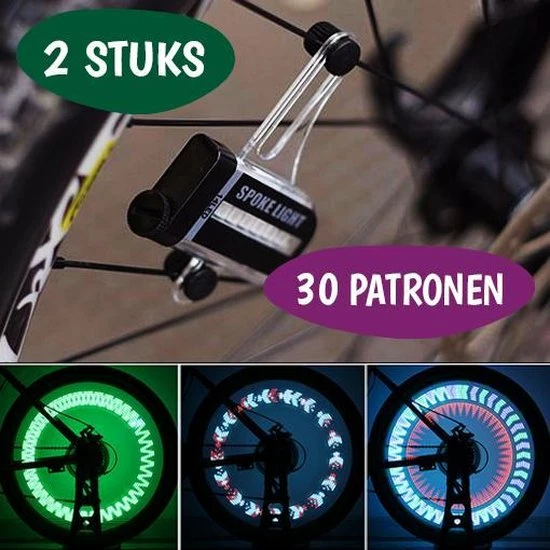 De spaakverlichting is waterdicht en heeft wel 30 verschillende patronen om uit te kiezen. Wat een keuze! Op elke snelheid die je fiets, zien deze schitterende patronen er anders uit. Iedereen moet natuurlijk goed kunnen zien hoe tof jouw fiets is! Daarnaast is het ook een goede manier om op te vallen in het verkeer als het donker is. Om het gebruik van de spaakverlichting ook handiger te maken heeft ons product een licht/bewegingssensor. Daardoor gaat het product automatisch aan in het donker of tijdens schemerig weer. Erg handig dus!