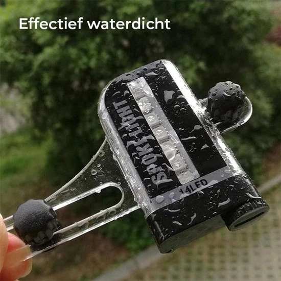 De spaakverlichting is waterdicht en kan dus tegen een stootje. Maak je dus geen zorgen over het Hollandse weer.