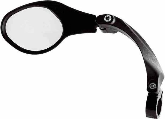 Mirage fietsspiegel de luxe draaibaar + klem op kaart. Kleur zwart. De spiegel is van onbreekbaar glas en verweerd niet. Behuizing en steun zijn van hoogwaardig kunstof. De bouten en metalen onderdelen zijn roestvrij. Voorzijde is voorzien van een reflector. Makkelijk instelbaar voor elke hoek. Aanbevolen voor gebruik bij hoge snelheden o.a.:race- of E-bikes/electrische fietsen. De spiegel moet aan de linkerzijde gemonteerd worden en is voor een stuur diameter van 22.2mm.