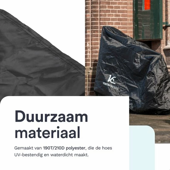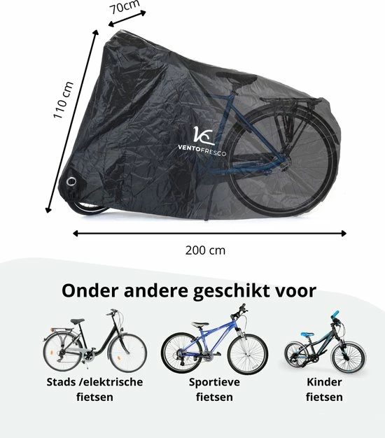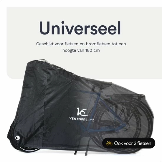 De Vento Fresco fietshoes is extra groot en daardoor geschikt voor de meeste fietsen, mountain bikes, E-bikes, BMX?s en bromfietsen. Zo heb je een beschermhoes voor meerdere voertuigen. Of je deelt hem met je familie, buren of vrienden.