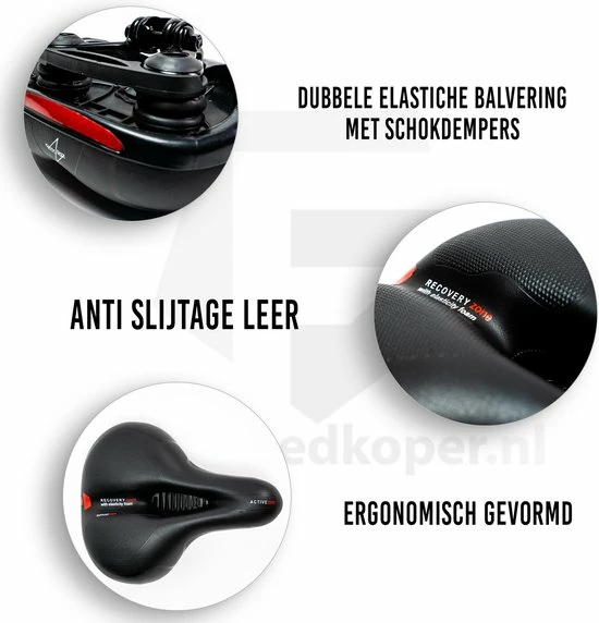 – Door de gelpads is het fietszadel dik, elastisch, comfortabel en ademend waardoor het aangenaam is om op te zitten. – – – Doordat het fietszadel uit polyurethaan, leer en staal bestaat is deze gemakkelijk schoon te maken mocht er viezigheid op komen.